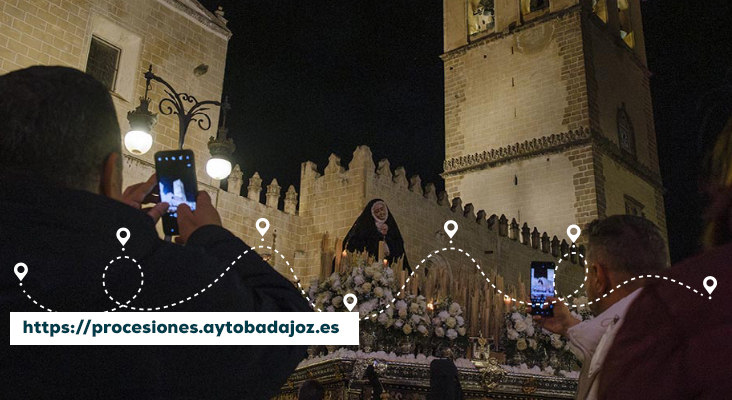 Seguimiento de las procesiones en el mapa de Badajoz en https://procesiones.