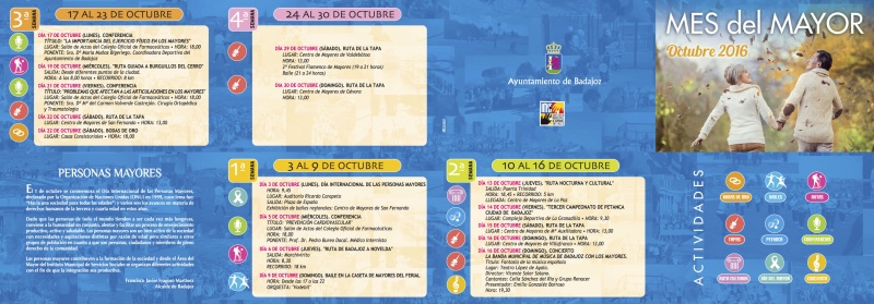 El Área del Mayor del Instituto Municipal de Servicios Sociales vuelve a organizar un año más, y ya son más de veinte, estas Jornadas de la Primavera, dedicadas a toda la población mayor de nuestra ciudad. Con estas actividades pretendemos mejorar el bienestar social e individual de las personas mayores, mejorar su calidad de vida, su autonomía personal, previniendo situaciones...